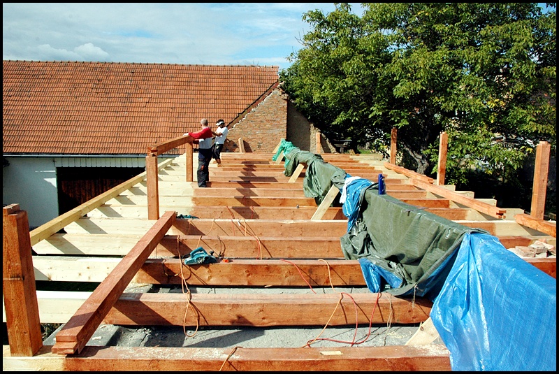 15. 10. 2009 – Tesařské práce – krov polovalba – Drahelčice, Praha
